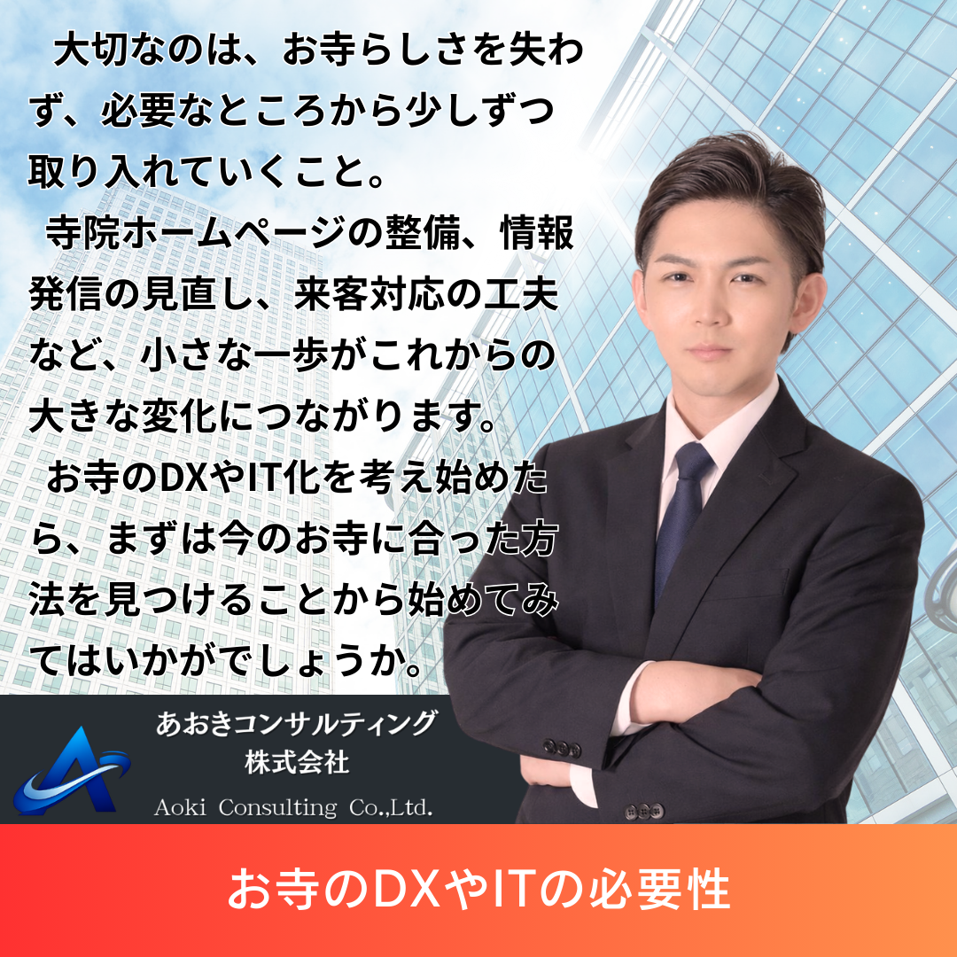 あおきコンサルティングが、寺院のIT化・DXをやさしくサポートいたします!