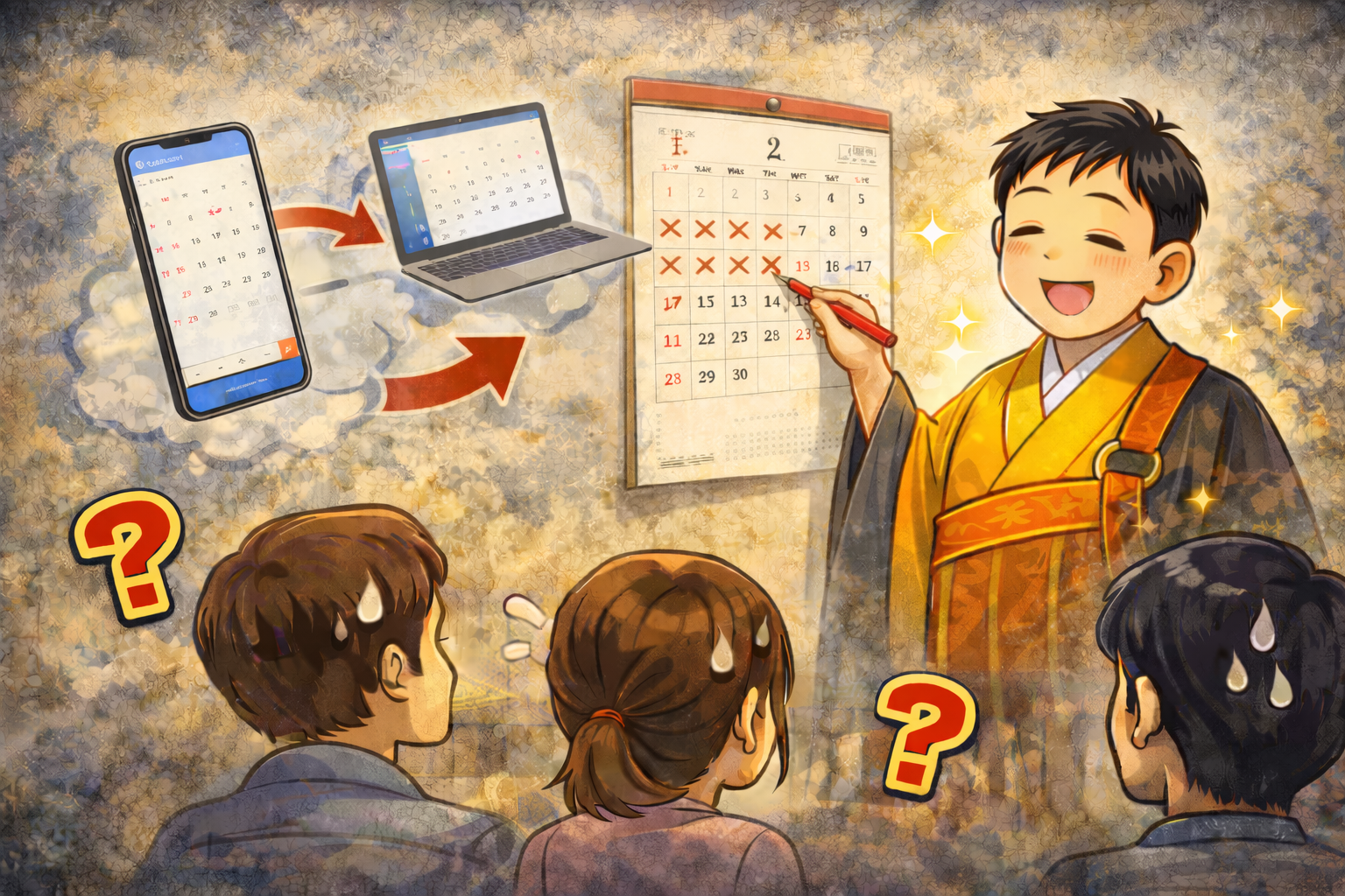 まだ紙のカレンダーに手書きで回してるところが多い。