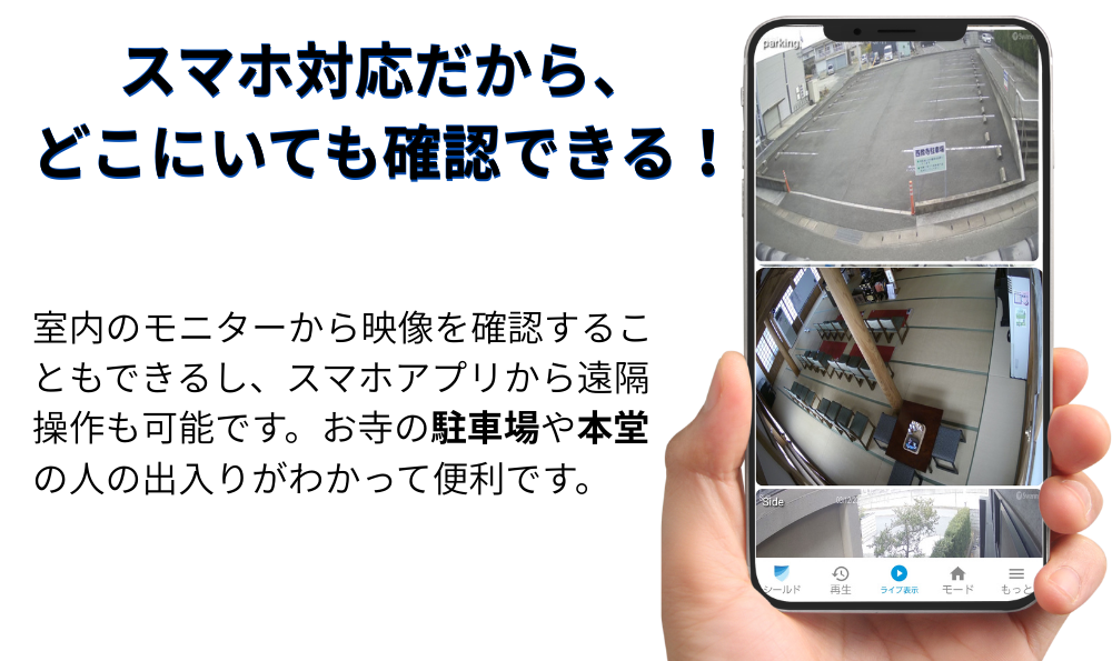 防犯システムが日常を静かに見守ることで、住職やお寺の関係者が感じている見回りの負担や心理的な不安を軽減できます。